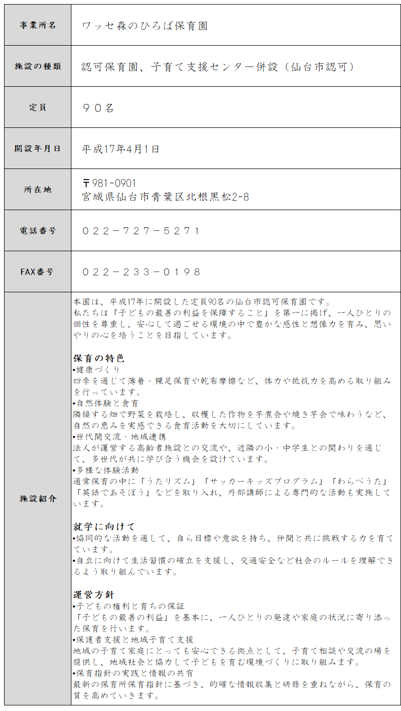 認可保育園 ワッセ森のひろば保育園